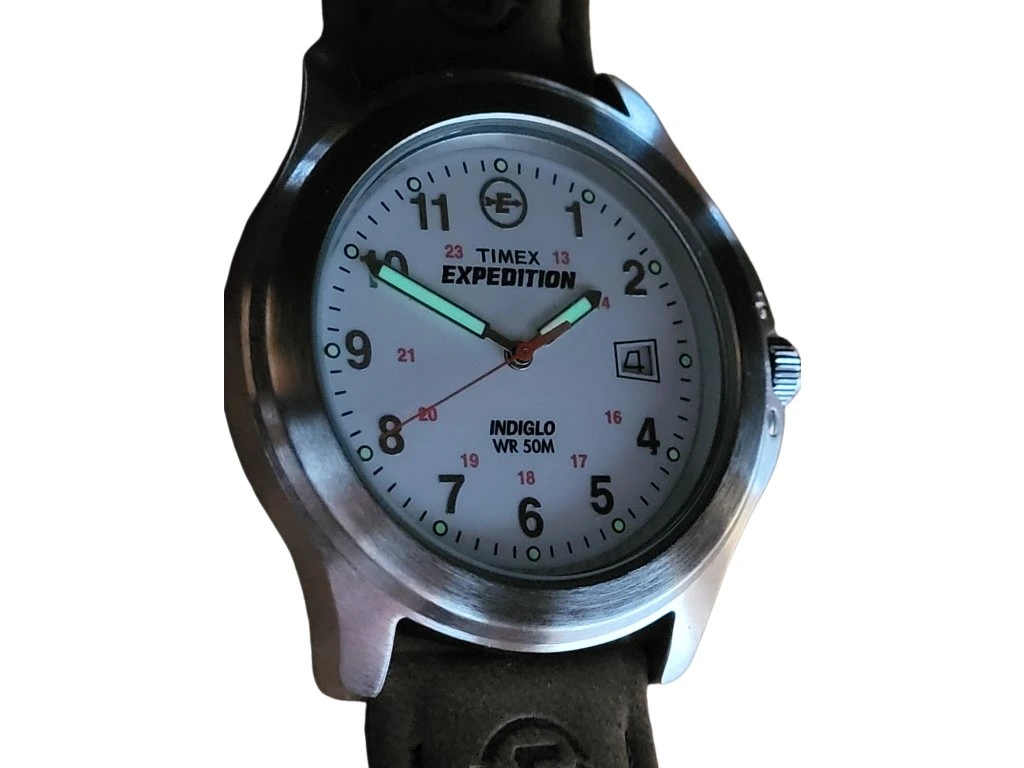 Timex Expedition T44380 - odolné hodinky s podsvícením Indiglo, luminiscencí a datem. Přehledný a spolehlivý parťák ať už jste kdekoliv.
