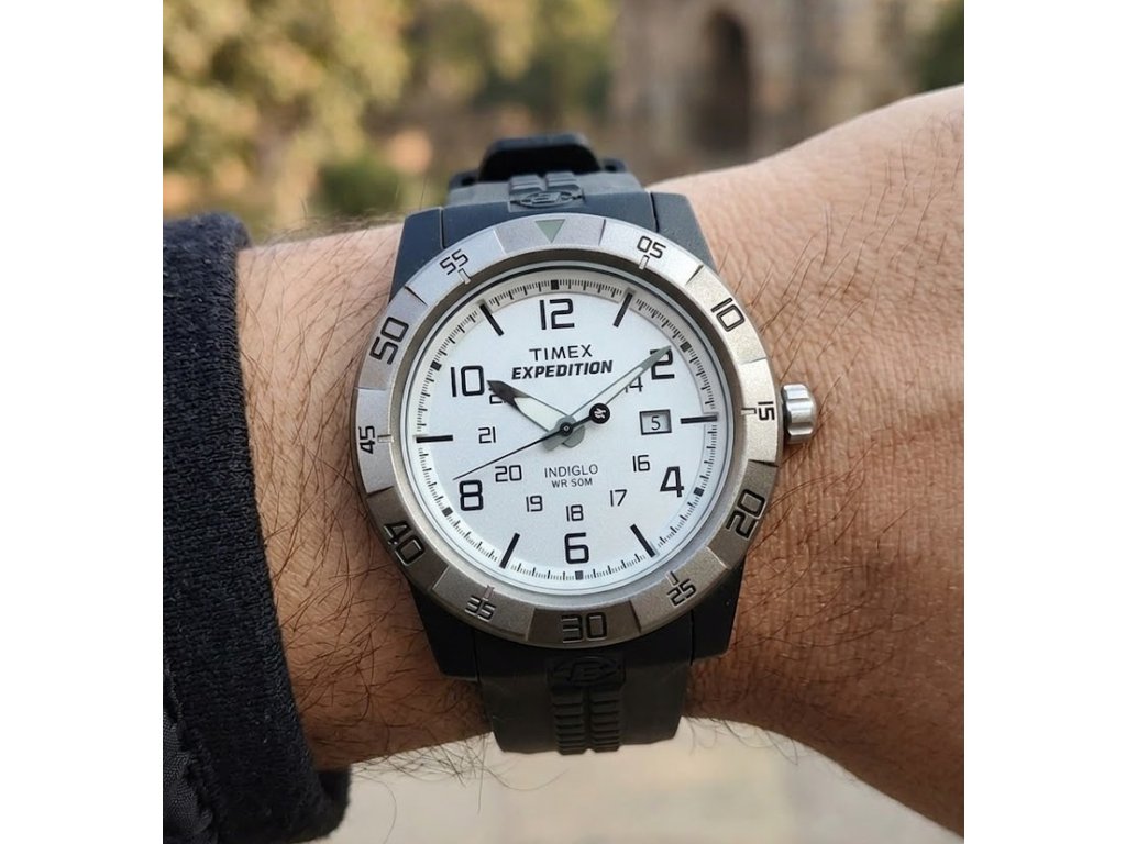 Odolné outdoorové hodinky Timex Expedition T49864 v klasickém vzhledu s praktickými funkcemi. Nabízejí legendární podsvícení Indiglo, luminiscenční ručičky a vodotěsnost 5 ATM, což z nich dělá ideálního parťáka pro každé dobrodružství.