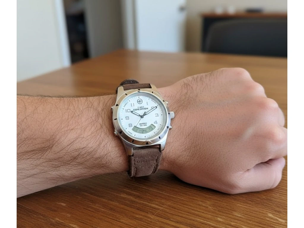 Outdoorové hodinky T44640 představují ideální průsečík mezi klasickou estetikou a moderními funkcemi. Dominantou je bílý ciferník s výraznými číslicemi, který kombinuje tradiční analogové ručičky s praktickým digitálním displejem ve spodní části. Vhodné do práce i do terénu.