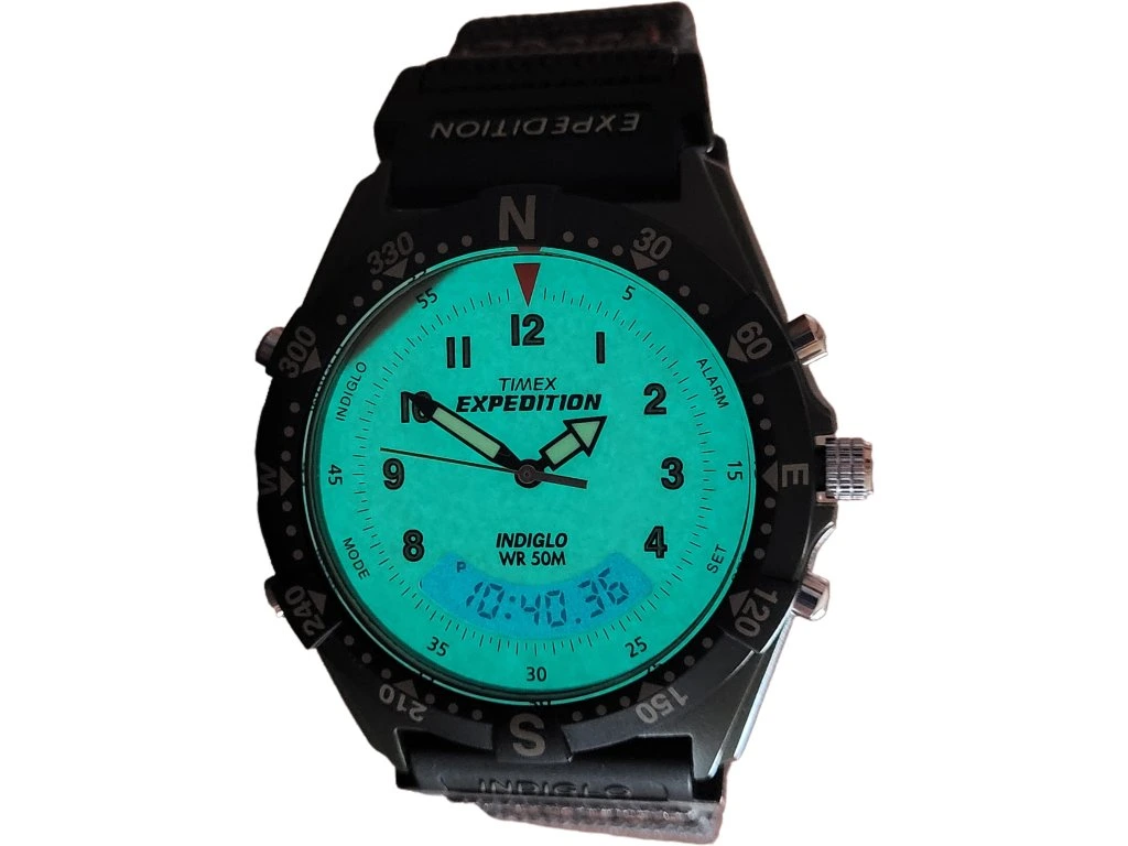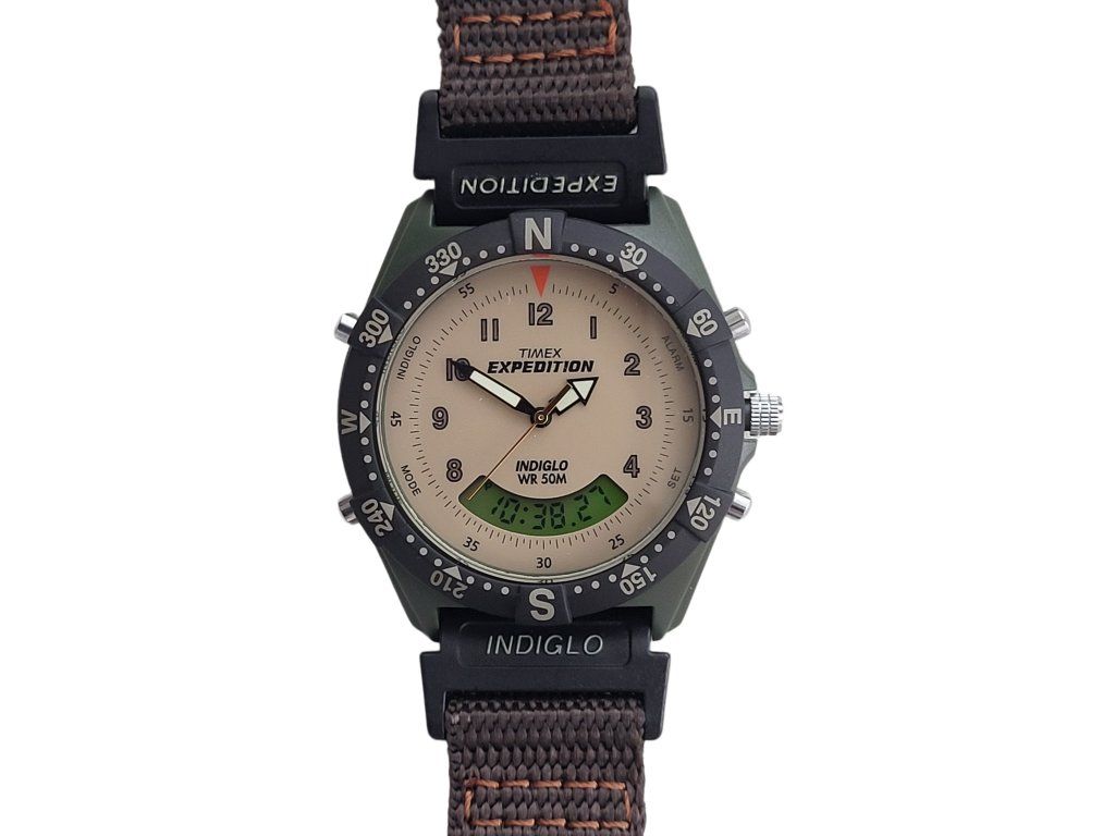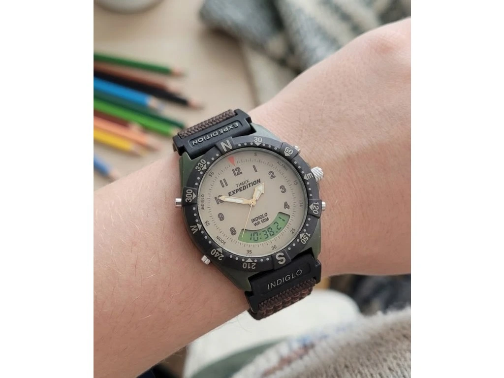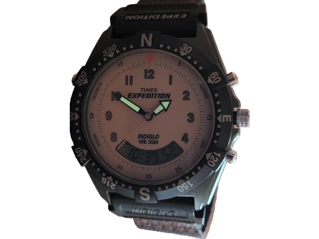 Hodinky Timex Expedition Combo T84601 s Indiglo, kombinovaným ciferníkem a praktickými funkcemi. Vhodné pro všechny outdoorové nadšence. Díky své velikosti jsou vhodné i pro dámy nebo děti, které odrostly obrázkovým motivům a chtějí něco dospěláckého.