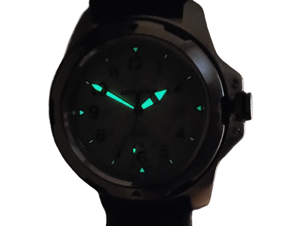 Podsvícení Indiglo: Stačí stisknout korunku a celý ciferník se rovnoměrně rozzáří. Ideální pro orientaci v úplné tmě nebo za špatné viditelnosti.