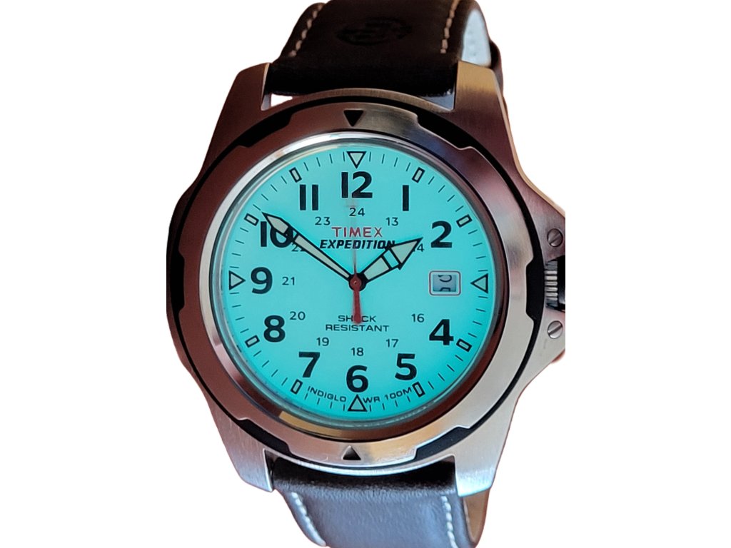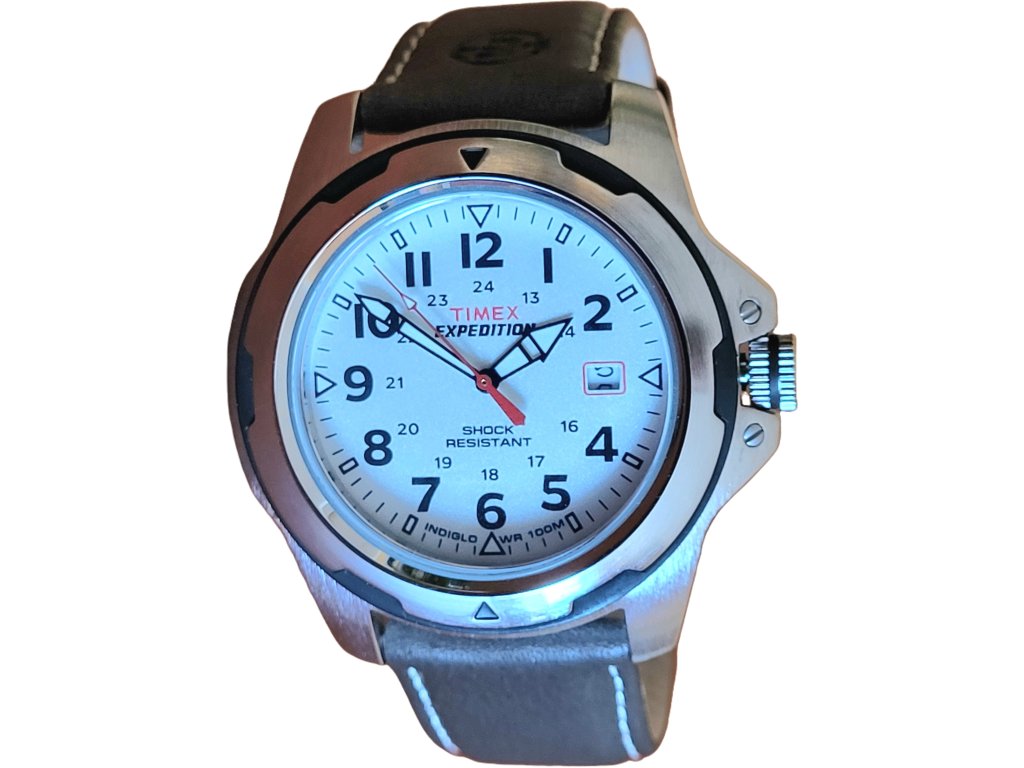 Outdoorové hodinky s podsvícením Indiglo, zobrazují aktuální den v měsíci, luminiscenční ručičky, odolné vůči nárazům, vodotěsnost 100 m