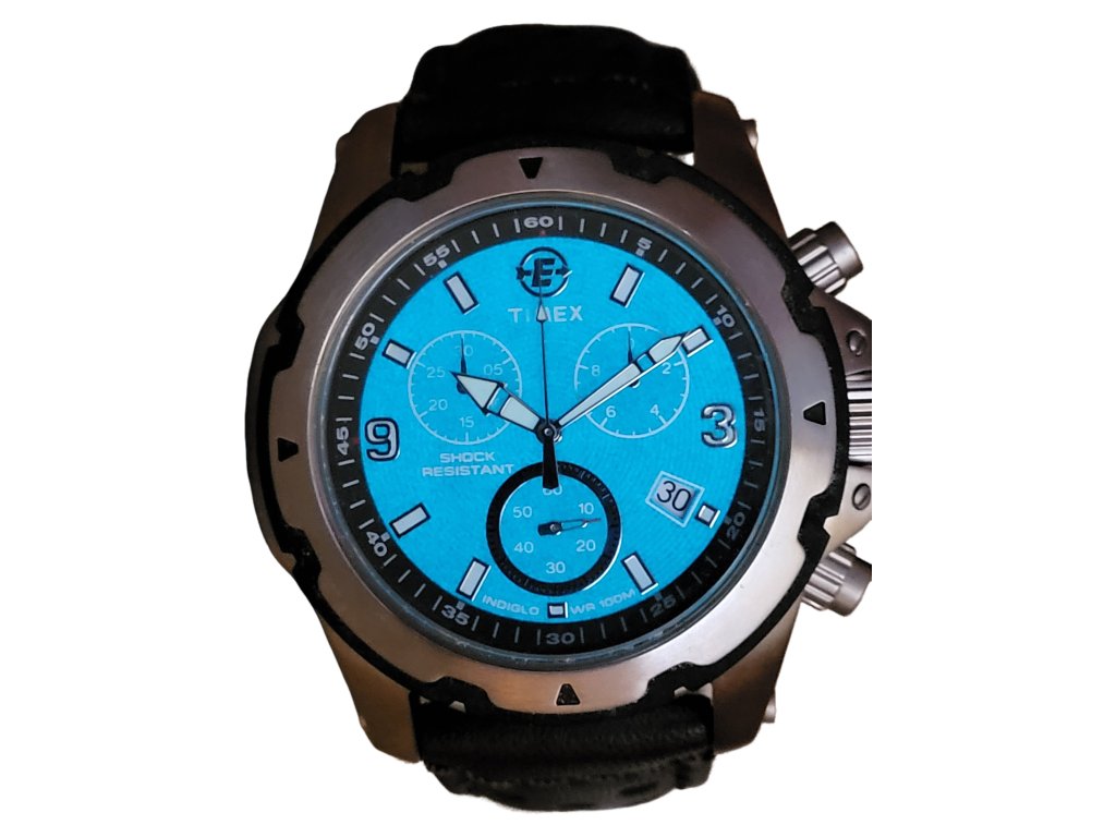 Outdoorové hodinky s chronografem, datum zobrazuje aktuální den v měsíci, pevná luneta, luminiscenční ručičky, vodotěsnost 100 m, podsvícení Indiglo s nočním režimem