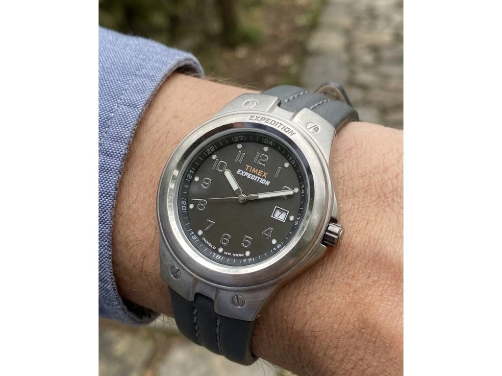 Odolné outdoorové hodinky Timex T49631 s ikonickým podsvícením Indiglo. Průměr 40 mm, vodotěsnost 100 m, datumovka a luminiscence. Ideální parťák do terénu i pro běžné nošení.