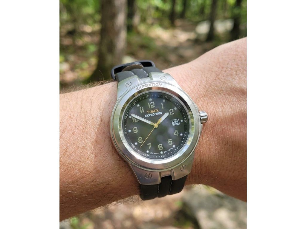 Odolné outdoorové hodinky Timex T49635W s ikonickým podsvícením Indiglo. Průměr 40 mm, vodotěsnost 100 m, datumovka a luminiscence. Ideální parťák do terénu i pro běžné nošení.