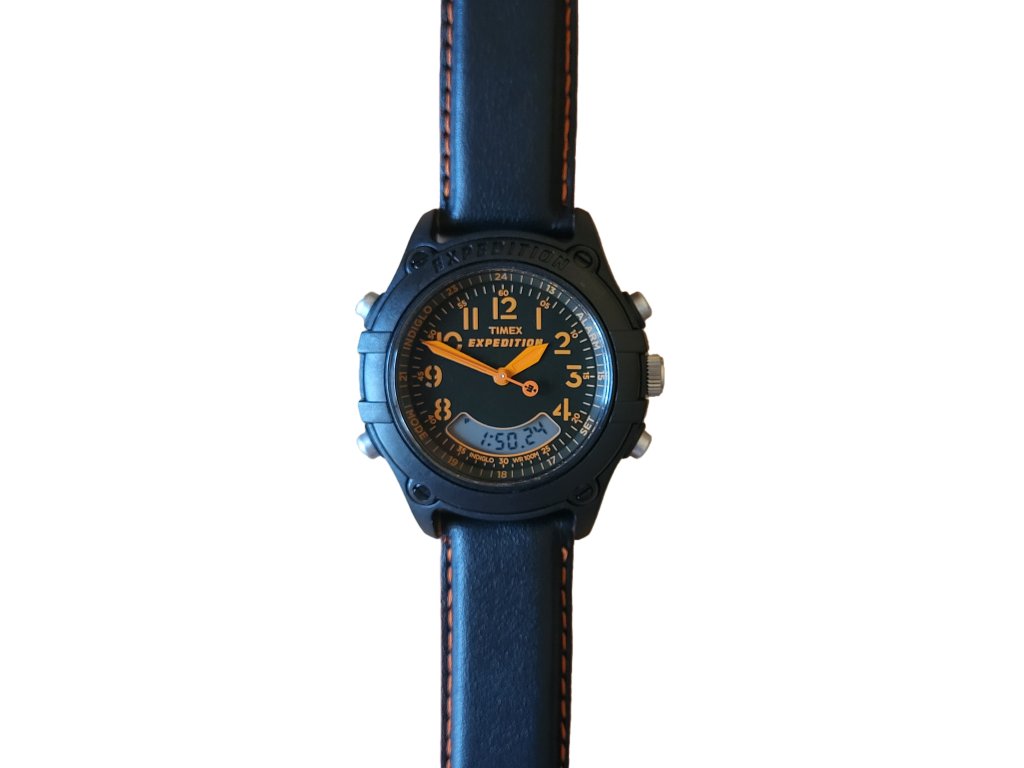 Outdoorové hodinky s chronografem a budíkem, kombinace analogového a digitálního zobrazení času, velmi lehké hodinky, podsvícení Indiglo, vodotěsnost 100m