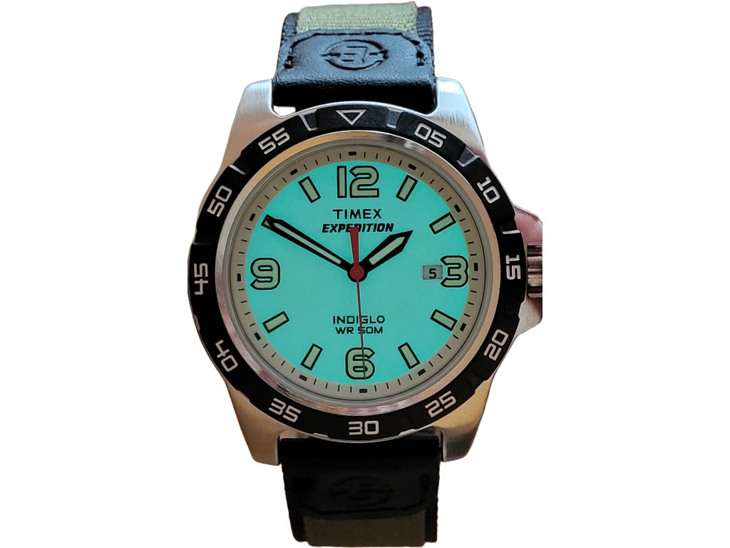 Outdoorové hodinky zobrazují aktuální den v měsíci, luminiscenční ručičky a ciferník, Indiglo, voděodolnost 50 m