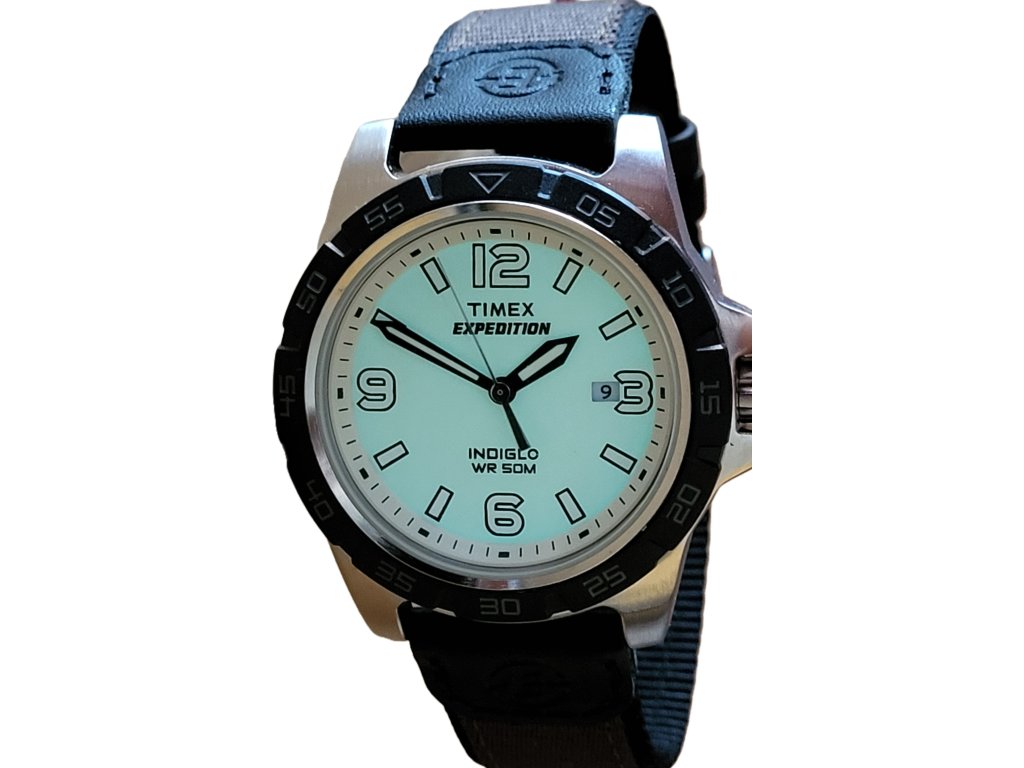 Outdoorové hodinky zobrazují aktuální den v měsíci, luminiscenční ručičky, pevná luneta, Indiglo, voděodolné 50 m