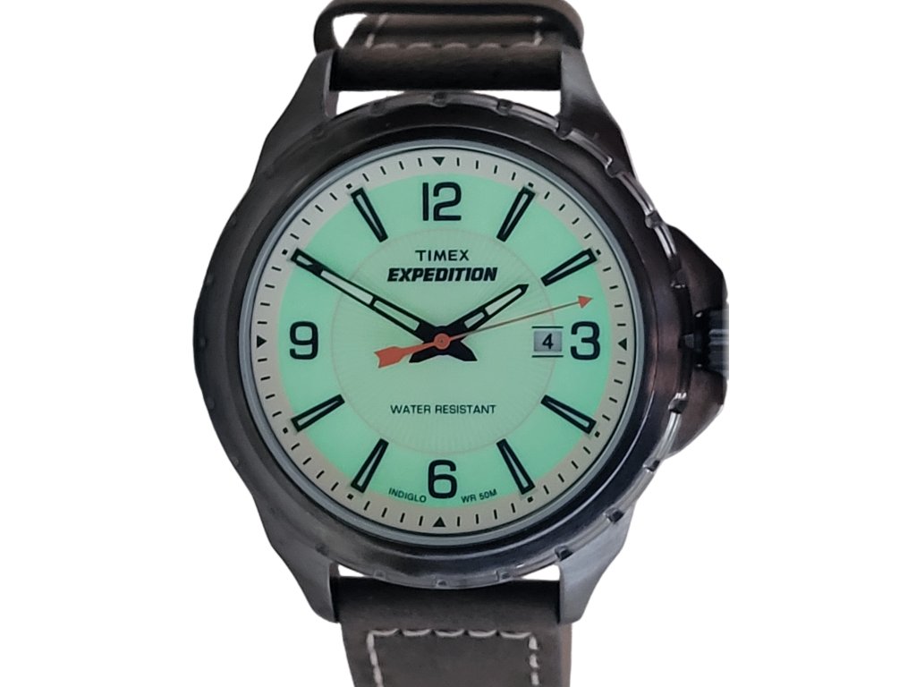Outdoorové hodinky s podsvícením Indiglo, zobrazují aktuální den v měsíci, luminiscenční ručičky, voděodolnost 50 m