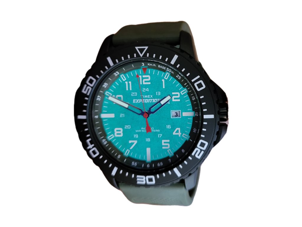 Outdoorové hodinky s osvětlením Indiglo, zobrazují aktuální den v měsíci, luminiscenční ručičky, pevná luneta, voděodolnost 50 m