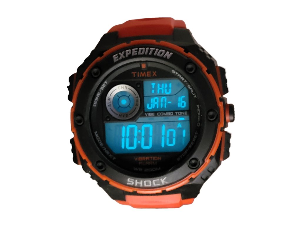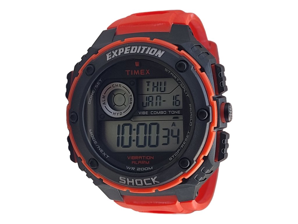 Outdoorové hodinky s chronografem, odpočíváčem a třemi budíky, možnost nastavení vibrací při upozornění, Indiglo, noční režim, vodotěsnost 200 m, odolnost vůči nárazům SHOCK, možnost nastavit připomenutí pitného režimu