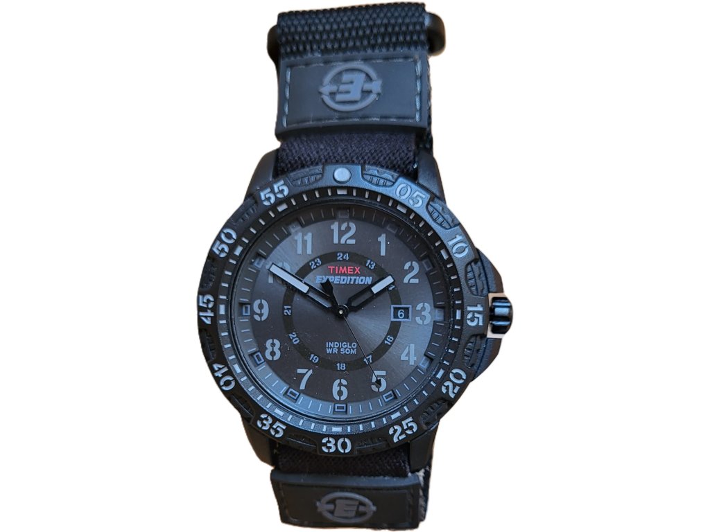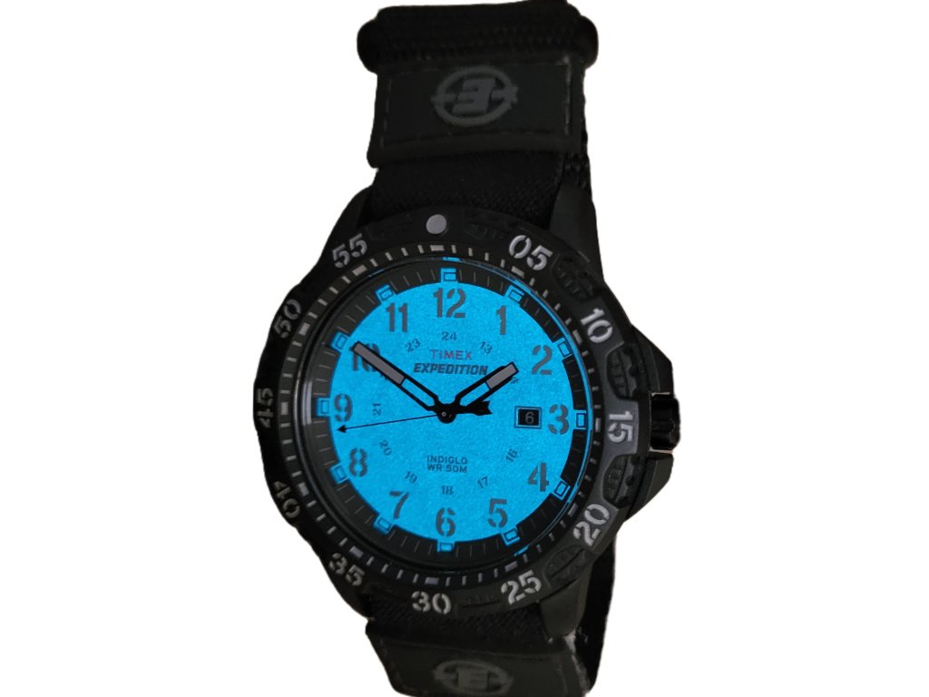 Outdoorové hodinky s podsvícením Indiglo, pevná luneta, datum ukazuje aktuální den v měsíci, luminiscenční ručičky, voděodolnost 50 m