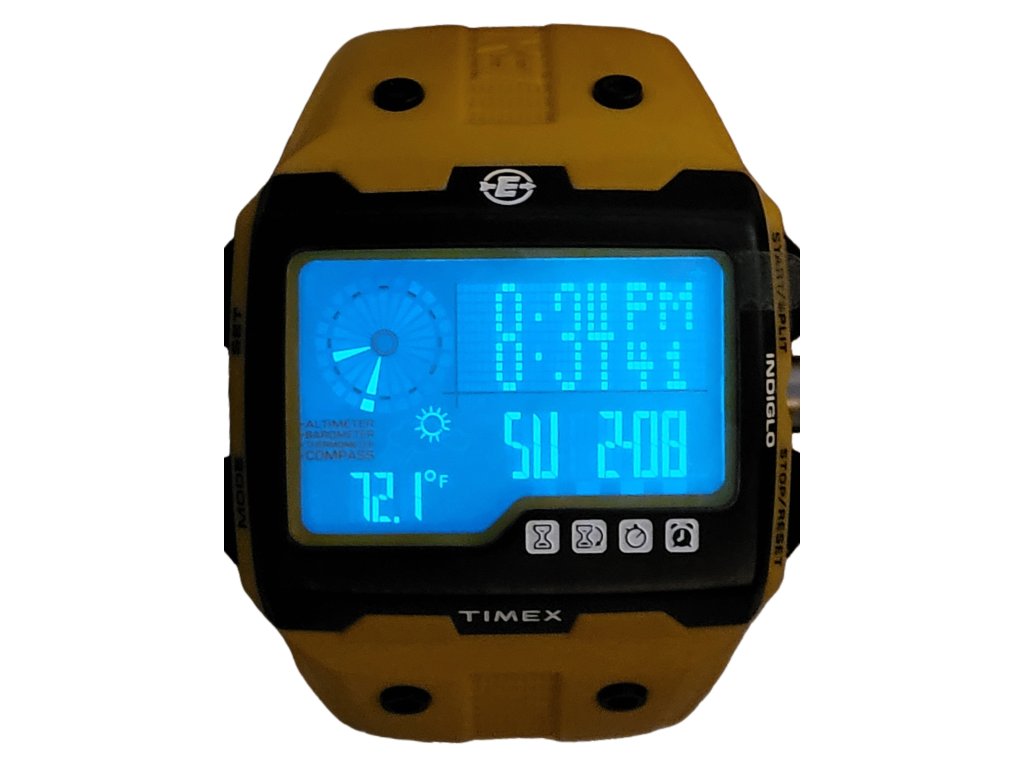 Outdoorové hodinky s podsvícením Indiglo, sledují a zaznamenávají stoupání, čas a výšku v rozmezí 400m - 9000m, zvukový alarm nadmořské výšky, vizuální graf sestupu a výstupu, měří aktuální tlak a tlak hladiny moře, vizuální graf změny tlaku, předpověď počasí na příštích 4-6hodin, rozsah teploty -10°C - 50°C, vodotěsnost 50 m, chronograf, odpočítávač, budík, možnost kalibrace hodinek