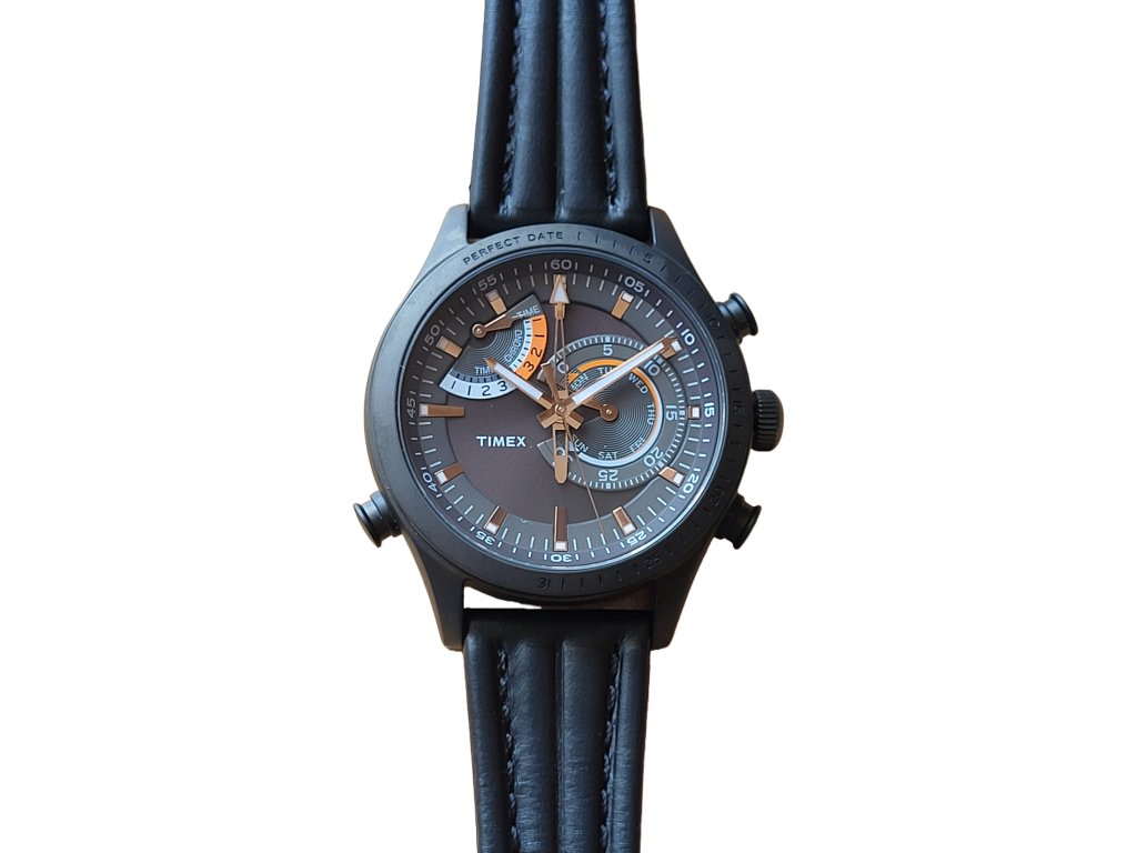 Klasické hodinky bez podsvícení, další ciferník zobrazuje aktuální den v týdnu a na posledním jsou funkce chronografu. Funkce perfect date pro přesné datum až do r.2100. Vodotěsnost 100 m, luminiscenční ručičky