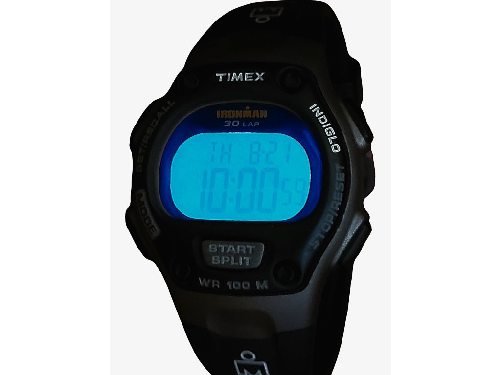 Sportovní hodinky s chronografem a pamětí 30 kol, odpočítávač, budík, podsvícení Indiglo s nočním režimem, vodotěsnost 100 m