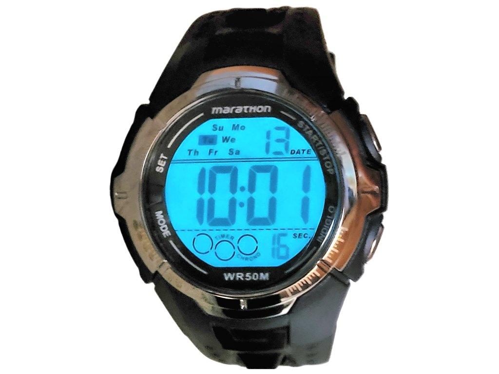 Sportovní hodinky s chronografem, odpočítávač, budík, Indiglo, voděodolnost 50 m