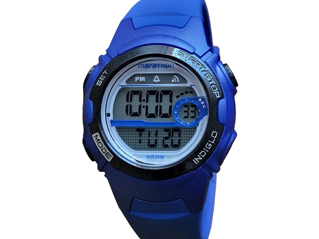 Sportovní hodinky s chronografem a budíkem, podsvícení Indiglo, zobrazují aktuální den v týdnu a měsíci, voděodolnost 50 m