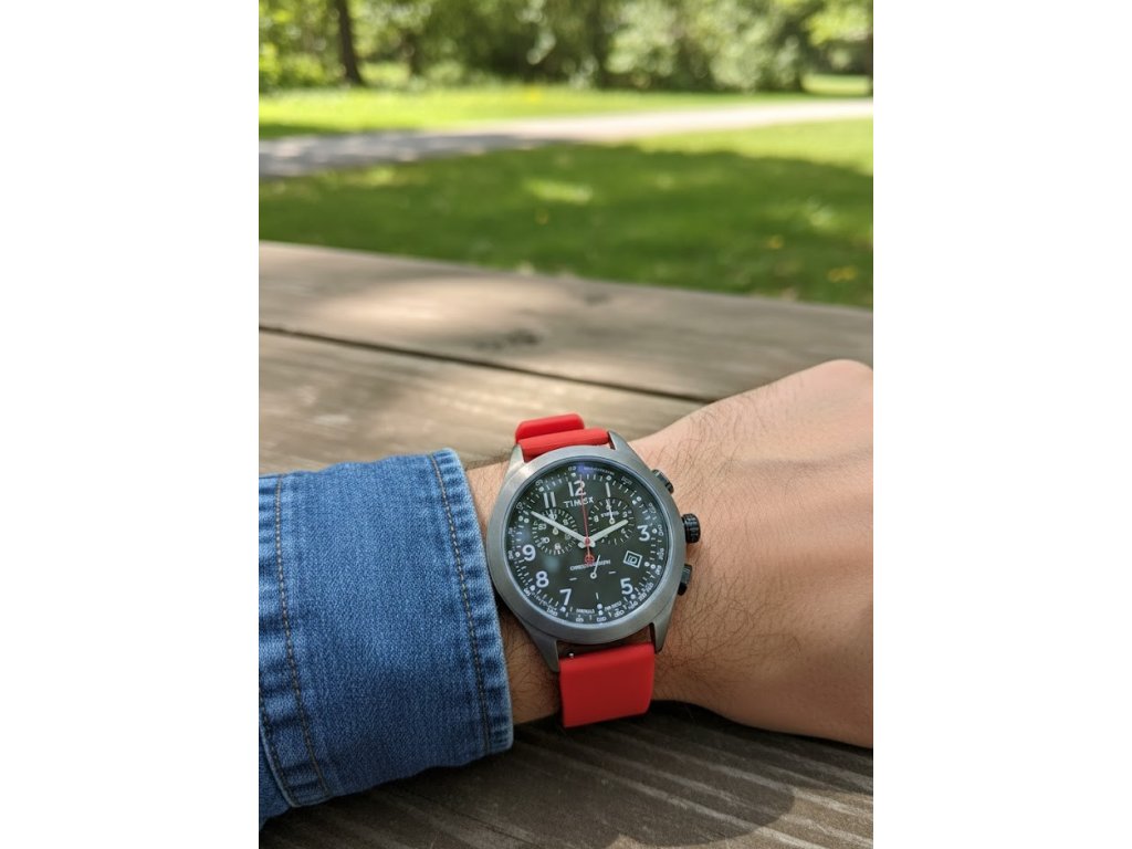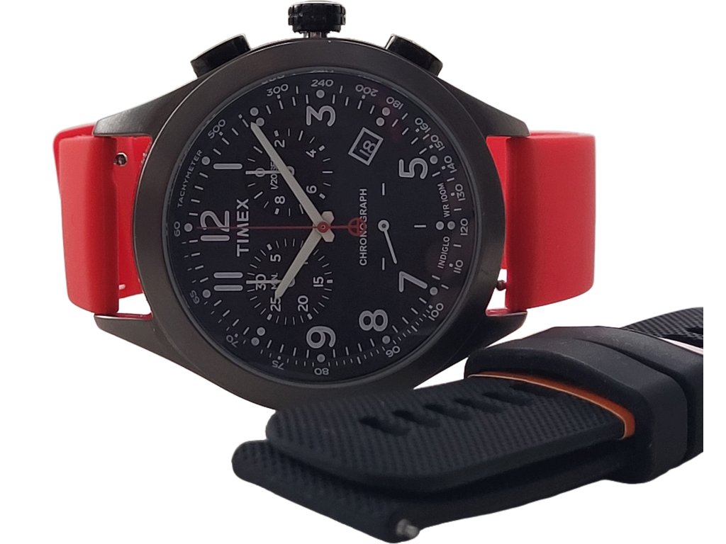 Hodinky Timex T2N390 s chronografem a podsvícením INDIGLO. Odolné sportovně - outdoorové hodinky v gunmetal designu s výrazným červeným řemínkem, datem, vodotěsností 100 m a tachymetrickou stupnicí. Ideální parťák pro dobrodružství i každodenní nošení. AKCE -k tomuto modelu přidáváme náhradní řemínek v černé barvě ZDARMA!