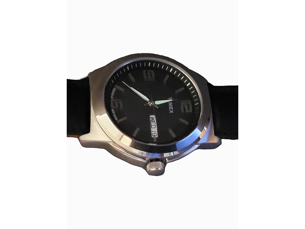 Klasické hodinky s podsvícením Indiglo, datum zobrazuje aktuální den v měsíci a zkratku pro den v týdnu, luminiscenční ručičky, voděodolnost 50 m