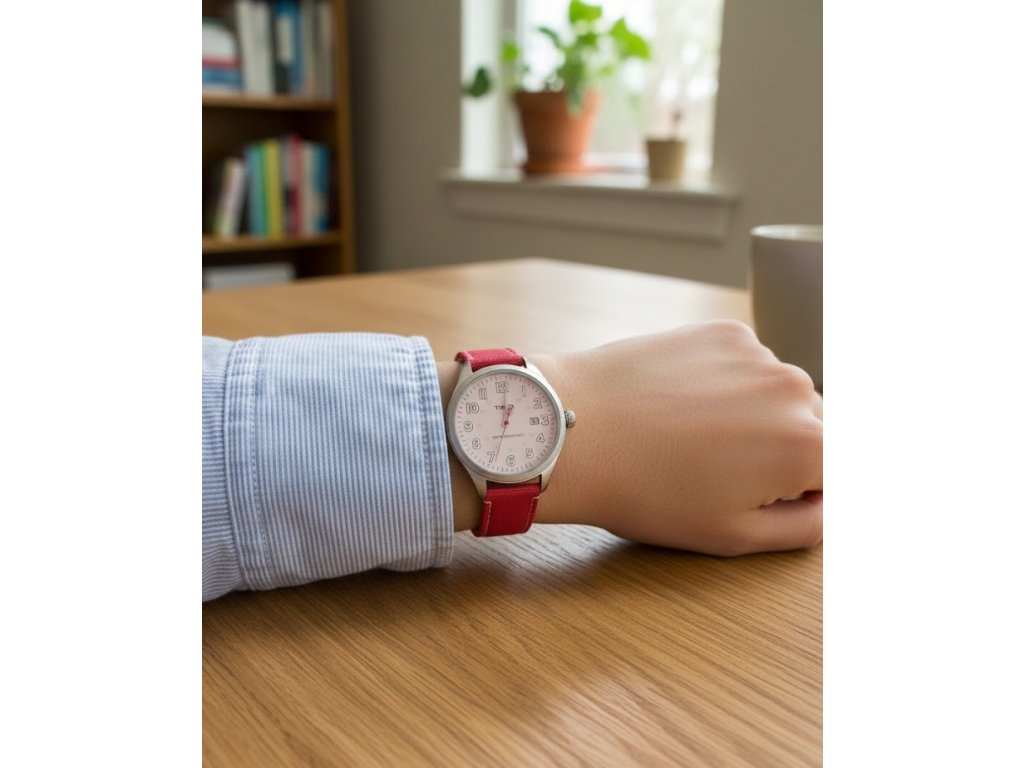 Hodinky Timex T2N311W s průměrem 38 mm a jemně růžovým ciferníkem. Nabízí datumové okénko, vodotěsnost 50 m a celoplošné podsvícení Indiglo. Kožený řemínek o šířce 18 mm s textilním pošítím. Vhodné k volnočasovému třičku, ale i ke košili při méně formálních příležitostech.