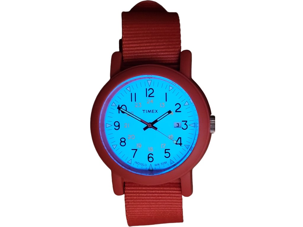 Klasické hodinky s podsvícením Indiglo, datum zobrazuje aktuální den v měsíci, voděodolonost 50 m, luminiscenční ručičky