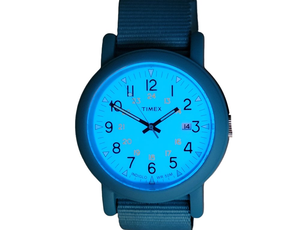 Klasické hodinky s podsvícením Indiglo, datum zobrazuje aktuální den v měsíci, voděodolonost 50 m, luminiscenční ručičky