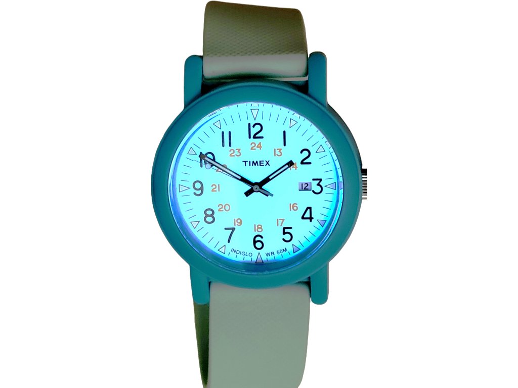 Klasické hodinky s podsvícením Indiglo, datum zobrazuje aktuální den v měsíci, voděodolonost 50 m, luminiscenční ručičky