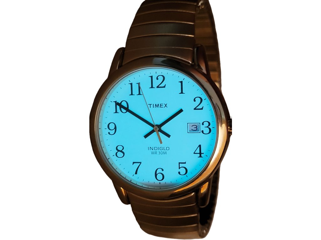 Klasické hodinky s podsvícením Indiglo, datum zobrazeno jako aktuální den v měsíci, voděodolnost 30 m