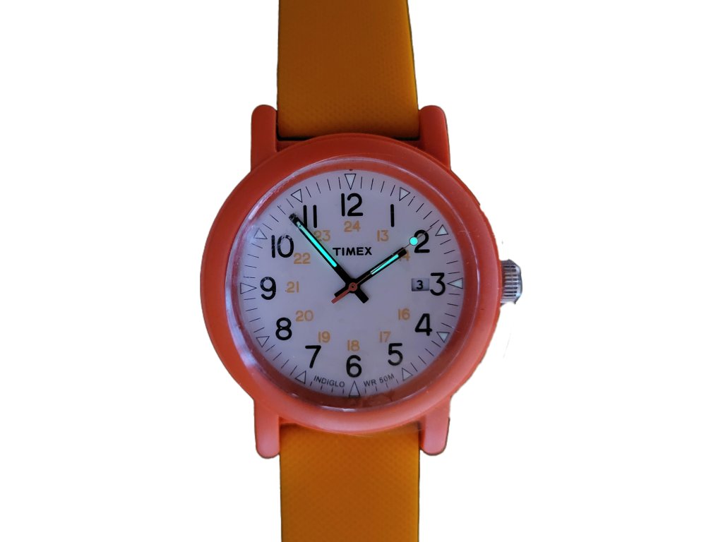 Klasické hodinky s podsvícením Indiglo, datum zobrazuje aktuální den v měsíci, voděodolnost 50 m, luminiscenční ručičky