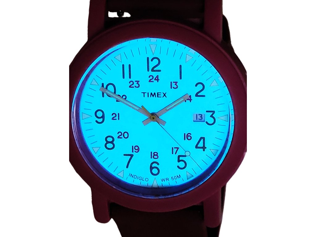 Klasické hodinky s podsvícením Indiglo, datum zobrazuje aktuální den v měsíci, voděodolonost 50 m, luminiscenční ručičky