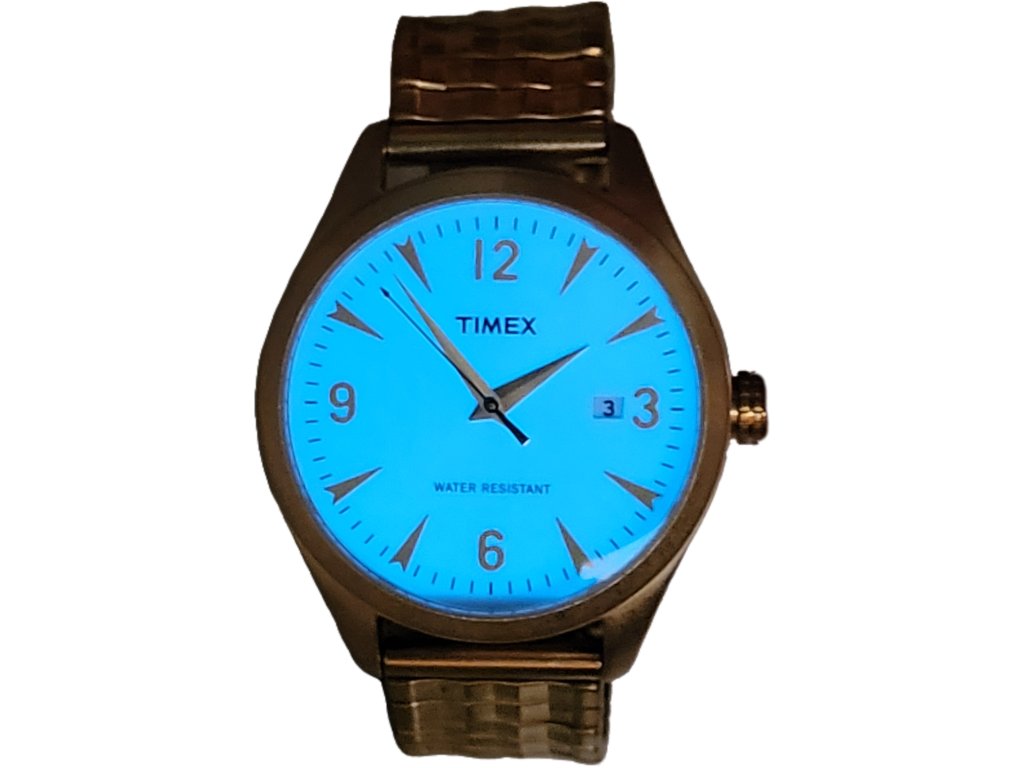 Klasické hodinky s podsvícením Indiglo, datum zobrazuje aktuální den v měsíci, voděodolnost 50 m