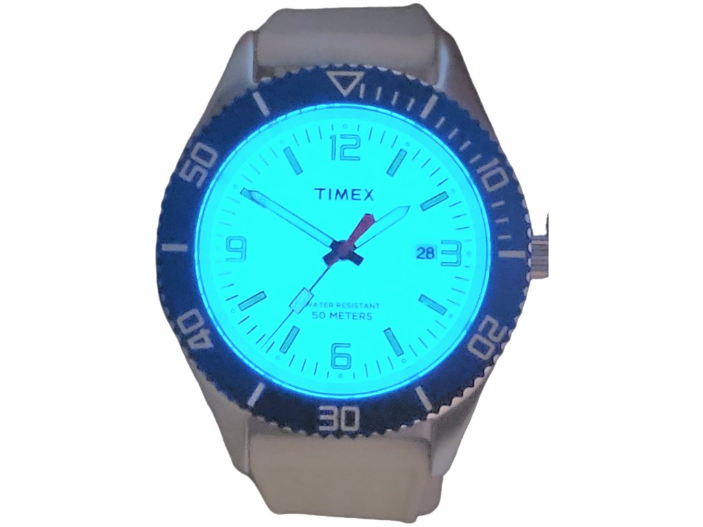 Klasické hodinky s podsvícením Indiglo, luminiscenční ručičky, datum zobrazuje aktuální den v měsíci, voděodolnost 50 m