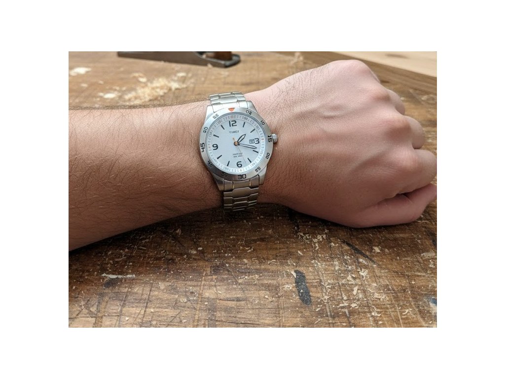 Odolné hodinky Timex T2N696 s ikonickým podsvícením Indiglo, datumem a vodotěsností 50m. Ideální volba pro každodenní nošení i pro práci v dílně. Čitelný bílý ciferník v odolném pouzdru.