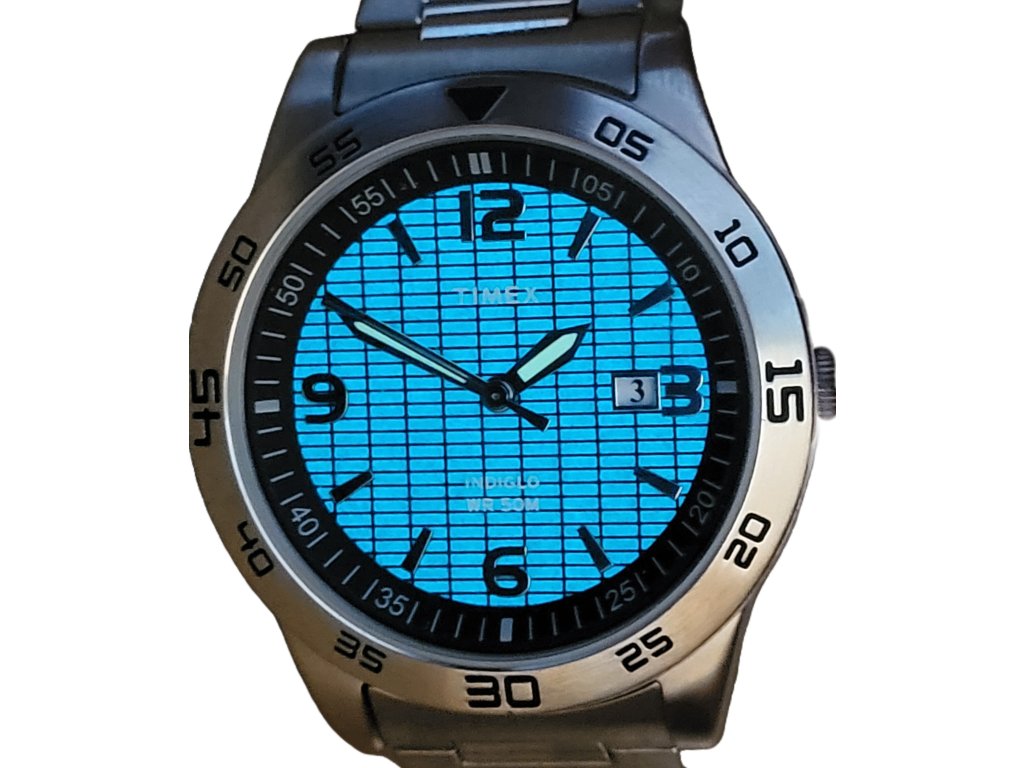 Klasické hodinky s podsvícením Indiglo, datum zobrazuje aktuální den v měsíci, voděodolnost 30 m, luminiscenční ručičky