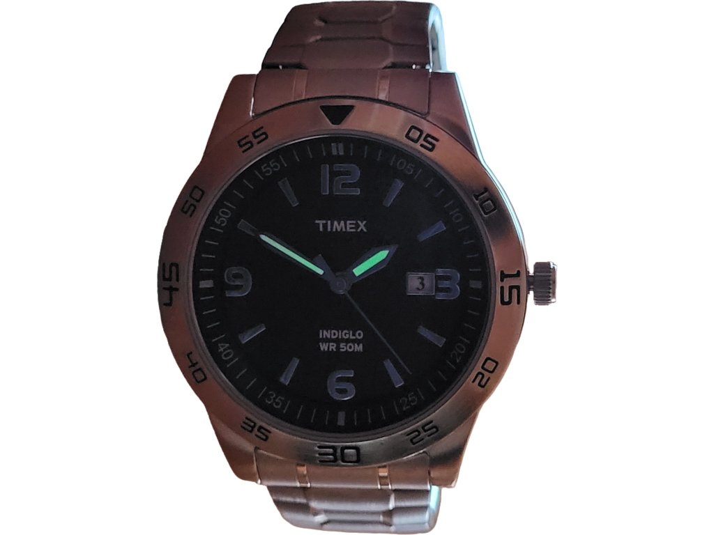 Timex T2N697 s ikonickým modrým podsvícením Indiglo a luminiscenčními ručičkami pro perfektní čitelnost ve tmě. Odolné pouzdro, datumovka a voděodolnost 50 m.