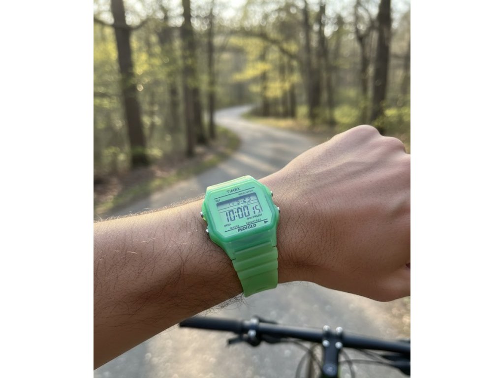 - Materiály: Lehké plastové pouzdro o průměru 36 mm, zadní víčko z nerezové oceli. Řemínek z poloprůhledného plastu stejné barvy šíře 18 mm. Díky drážkám ve vnitřní straně řemínku může pod hodinkami proudit vzduch, což snižuje pocení v místě kontaktu a zabraňuje nepříjemnému pocitu „přilepení“.