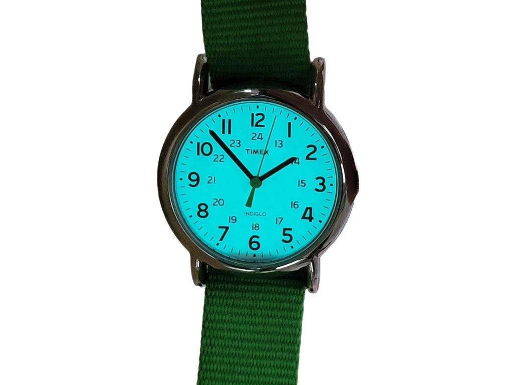 Timex T2N835 - Pouzdro 30 mm, podsvícení Indiglo a stylový zelený nylonový řemínek. Spolehlivý doplněk pro každodenní nošení pro dámy i děti, které odrostly obrázkovým motivům.