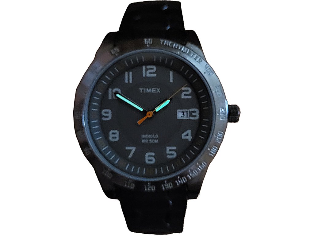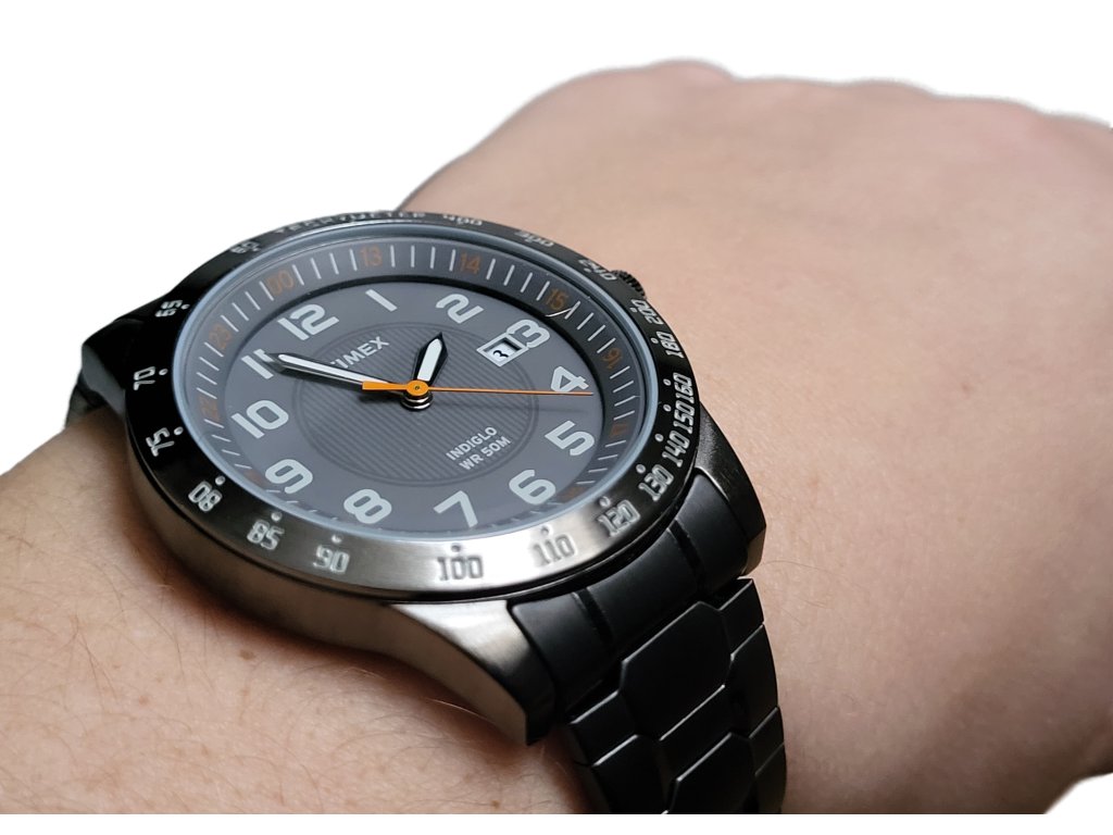 Hodinky Timex T2N919 s podsvícením Indiglo, luminiscenčími ručičkami, tachymetrickou stupnicí a datumovkou. Odolné minerální sklo, ocelový natahovací řemínek a vodotěsnost 50 m.