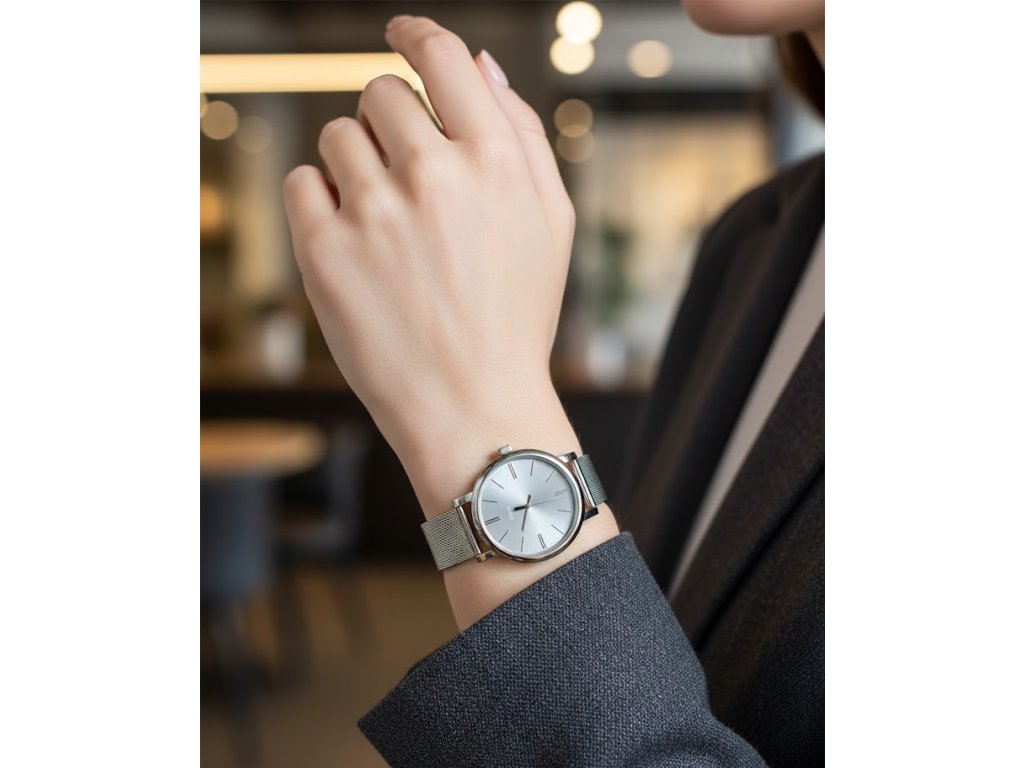Elegantní hodinky Timex T2N963 s minimalistickým stříbrným designem a ocelovým pleteným řemínkem. Perfektní doplněk pro profesionální outfit a business styl.
