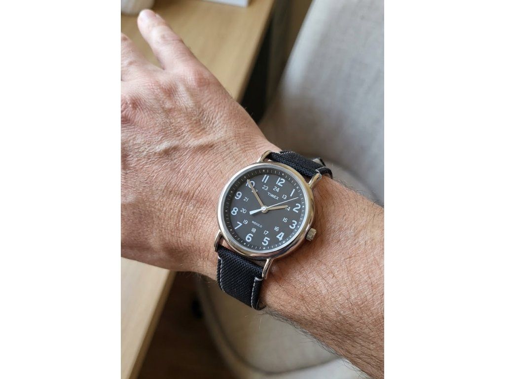 Stylové hodinky Timex Weekender T2P236W s 38mm pouzdrem, podsvícením Indiglo a 24h stupnicí. Odolné minerální sklo a řemínek (20 mm) pro každodenní nošení.