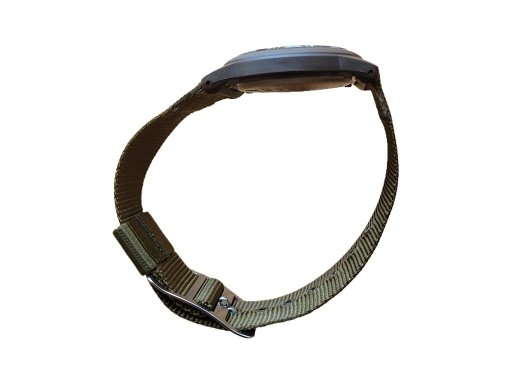 Řemínek: Textilní nylonový olivově zelené barvě, šíře 18 mm