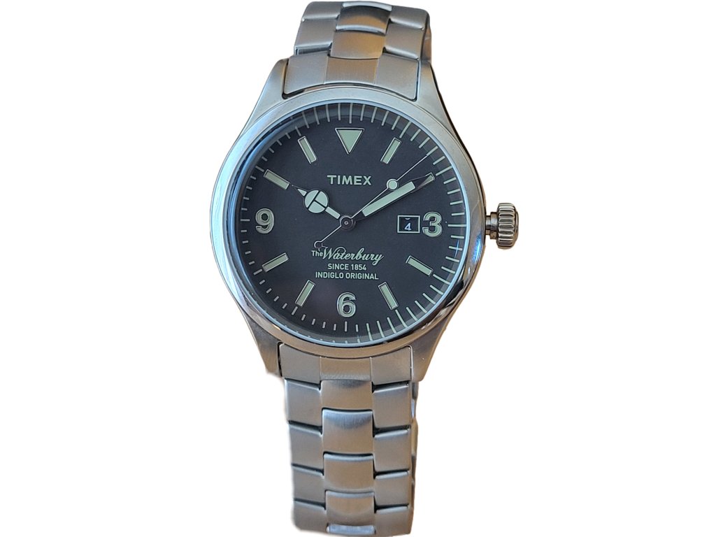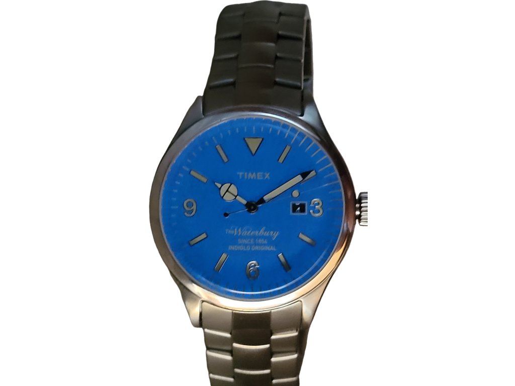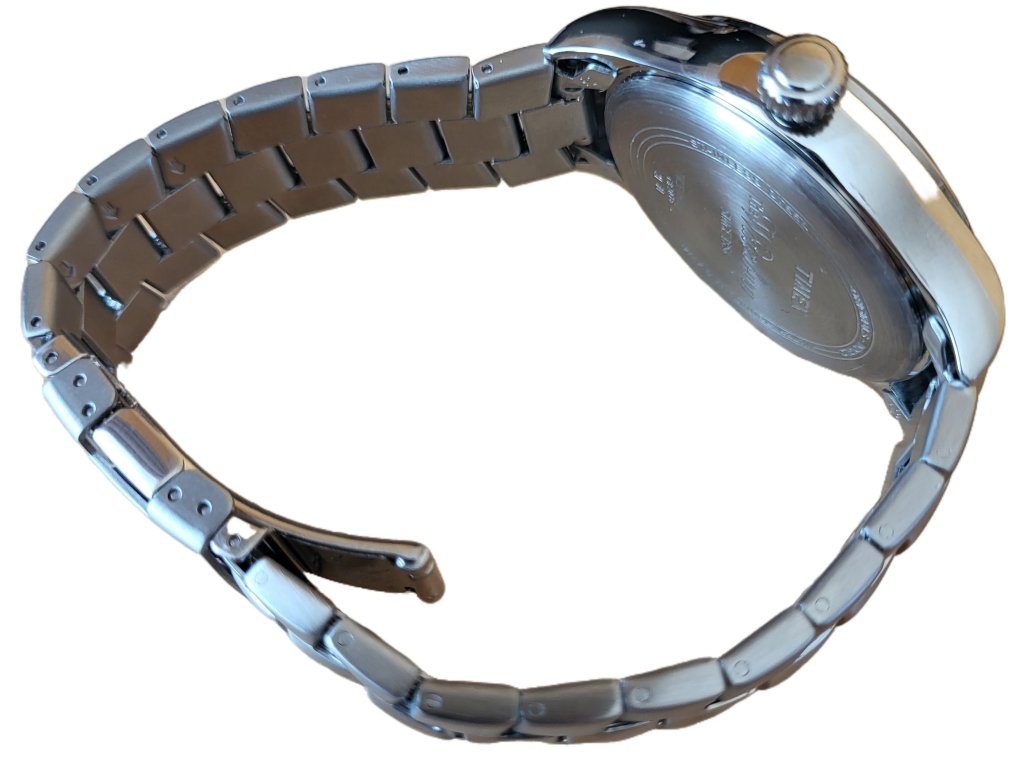 Klasické hodinky s podsvícením Indiglo, luminiscenční ručičky a ciferník, datum zobrazuje aktuální den v měsíci, voděodolnost 50 m