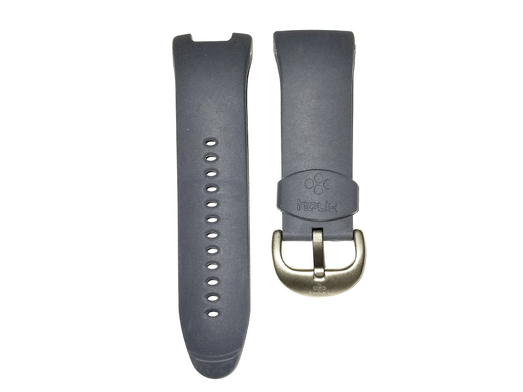 Gumový řemínek s ocelovou sponou.