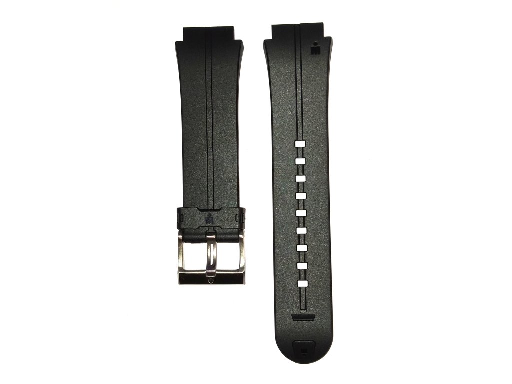 Gumový řemínek s ocelovou sponou.