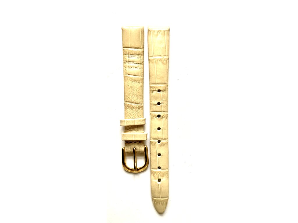 Řemínek na hodinky od firmy Timex. Materiál řemínku- kožený,bílý(slonová kost), zlatá kovová spona,tence prošívaný,uchyceni standart