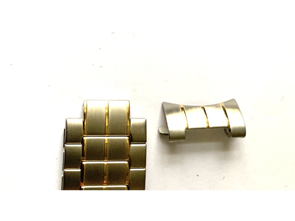 Řemínek na hodinky od firmy Timex. Materiál řemínku- kovový,biccolor,zlatý/stříbrný,pérový tah,voděodolný,kovová spona, specialní uchycení na určitý model hodinek