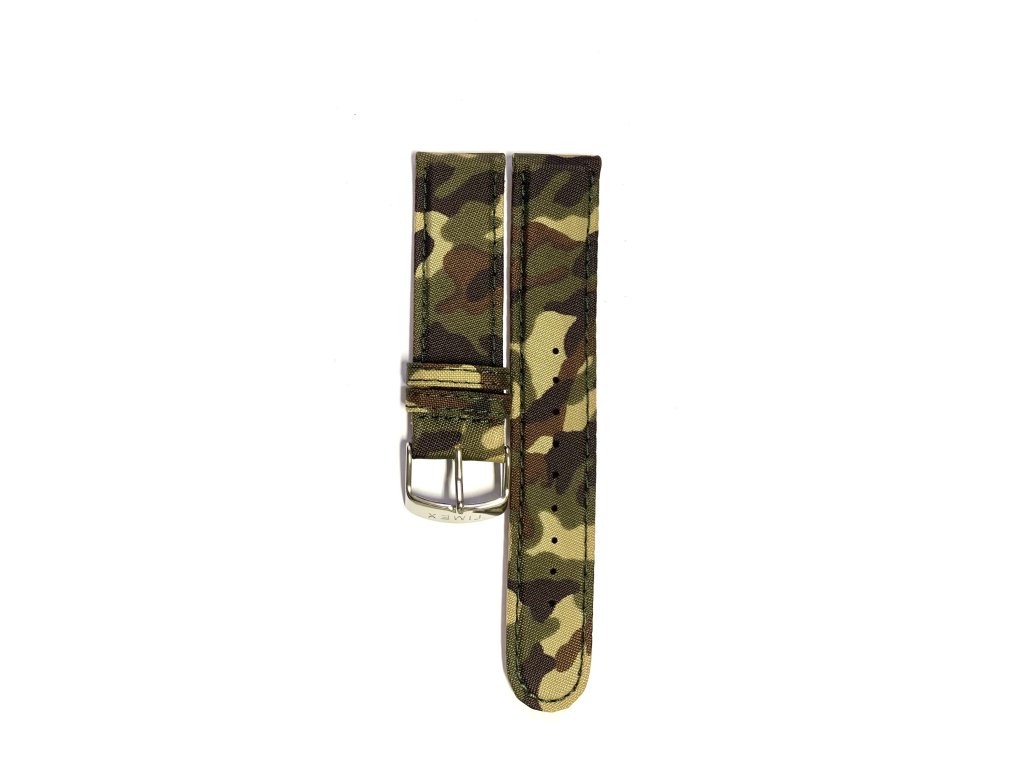 Řemínek na hodinky od firmy Timex. Materiál řemínku- kůže/silon,černý/zelený/hnědý s motivem,stříbrná kovová spona,tence prošívaný,uchyceni standart