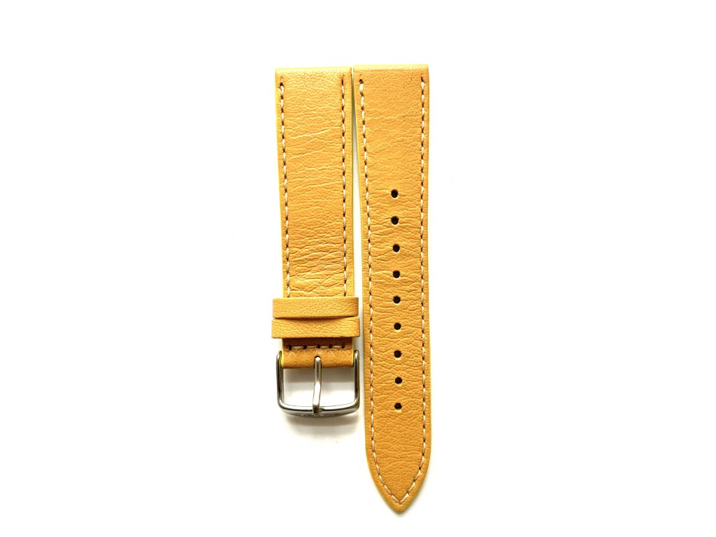 Řemínek na hodinky od firmy Timex. Materiál řemínku- kožený,okrový,stříbrná kovová spona,tence prošívaný,uchyceni standart