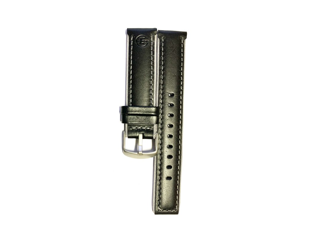Řemínek na hodinky od firmy Timex. Materiál řemínku- kůže/silon,černý,lemovaní silonové,stříbrná kovová spona,tence prošívaný,uchyceni standart,voděodolný