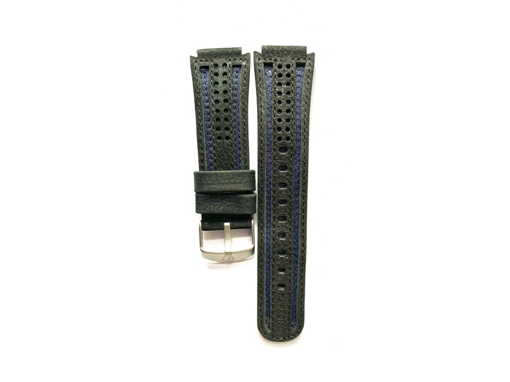 Řemínek na hodinky od firmy Timex. Materiál řemínku- kůže/silon,černý/modrý,kovová spona,tence prošívaný,uchyceni standart